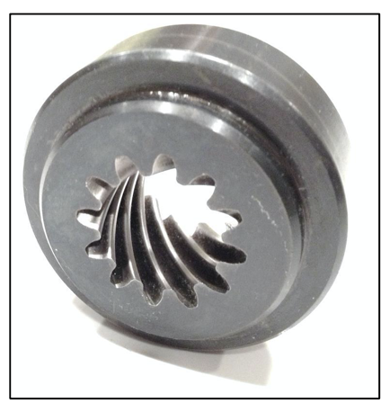 When using different electrodes to machine helical gears, the setup and C-Axis timing of the Rough and Finish electrodes is critical to maintaining accuracy. If there’s any error in the clocked timing between the electrodes, it will result in geometry form error on the final part and will extend cycle time. Depending on the thickness of the critical detail of the work piece, it is possible to create a single electrode that contains the geometry for both Rough and Finish machining. This method requires proper planning and design of the electrode, as the rotational timing of the electrode is uniform throughout, and the geometry size and reduction amount will be different between the Rough and Finish profile. There must also be proper clearance and spacing between the Rough and Finish electrode profiles that is greater than the thickness of the work piece detail, so that different power settings and overburn values can be used without damaging the work piece. With this method, the machining process with be a continuous C/Z axis machining motion that will apply different power levels between the Rough and Finish profile.