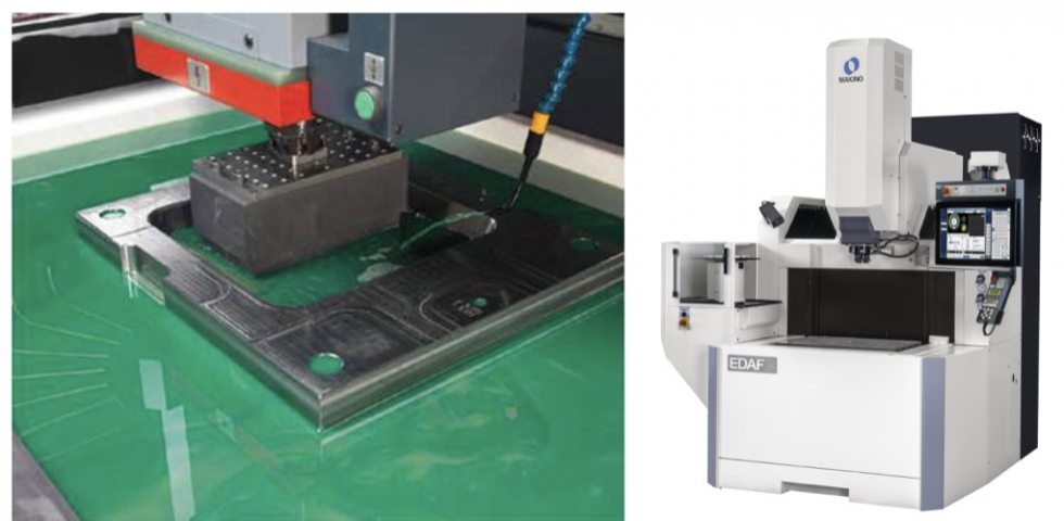Sinker EDM, also referred to as Ram EDM, uses electrodes machined from graphite or copper to shape the workpiece. Typically found in die/mold component manufacturing, a Sinker EDM raises and lowers (sinks) the electrode along the workpiece.
